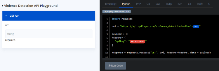 The Violence Detection API by APILayer is one of the most intelligent and advanced APIs you can find.How to Use Violence Detection API?
